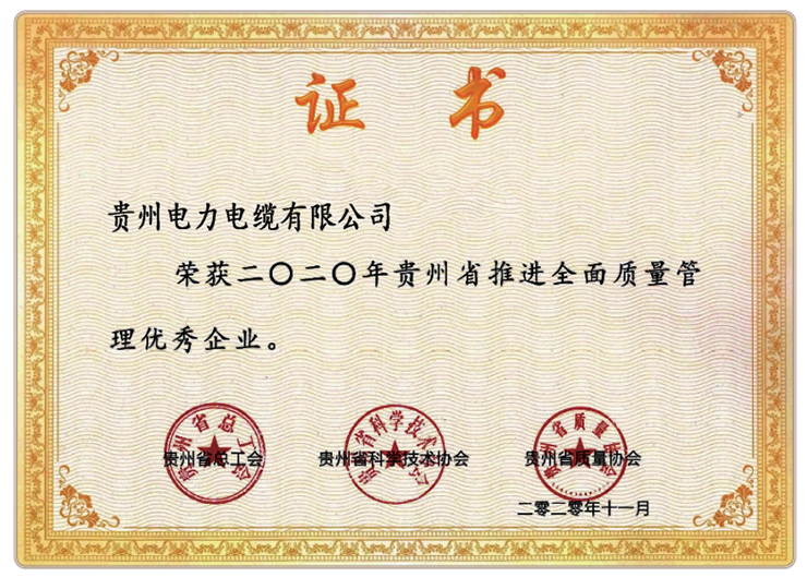 • 2020年貴州省推進(jìn)全面質(zhì)量管理優(yōu)秀企業(yè)